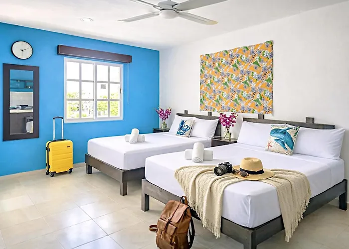 Located around 25 minutes' walk from the Martina Beach Club, the 2-room 500M To Kid Friendly Beach 2 Spacious Suites Sleep 8 4 Beds Kitchen Fast Wifi Ac 5A6A Playa del Carmen is approximately 3 km from a top family-friendly place like the Aquarium Beach. This 90 m² apartment features a patio that overlooks the courtyard.